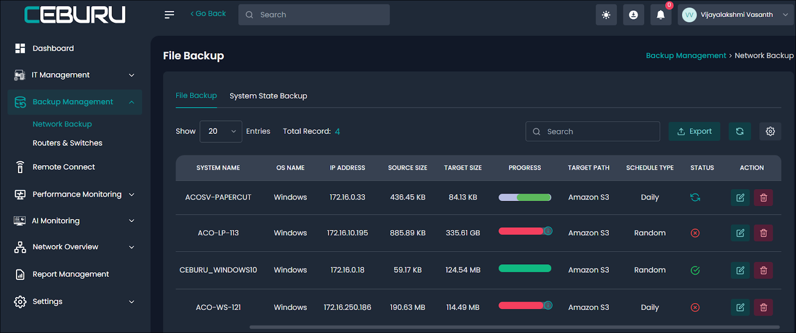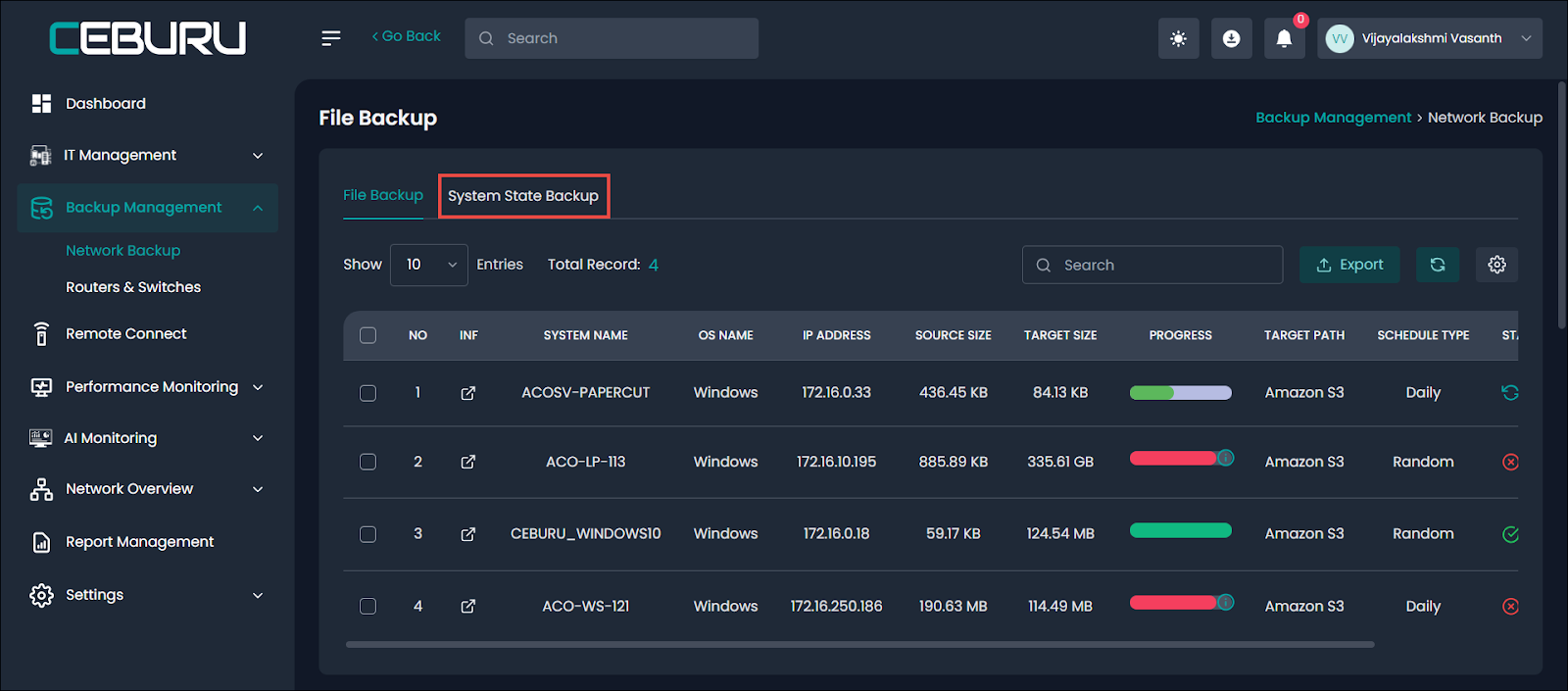 The System Status Backup page gives you the flexibility to monitor and backup critical system-related components and data on a Windows operating system that are essential for the proper functioning of the operating system such as system files, configurations, and settings.