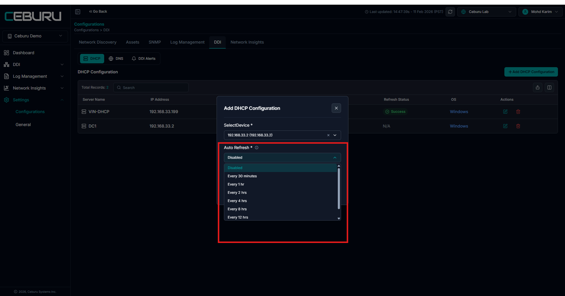 Auto refresh runs at configured intervals to keep IPAM data up to date.